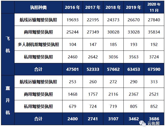 表2 驾驶员执照数量统计表(糖心vlog和直升机类)